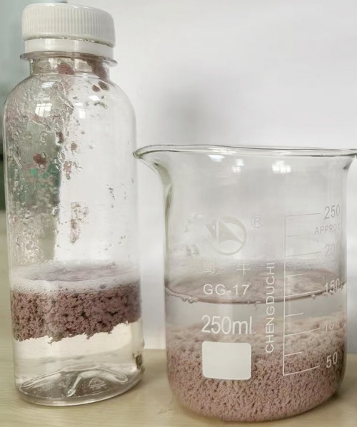 油漆廢水(底漆)經(jīng)過處理后,礬花明顯聚集且水質(zhì)變澄清,藥劑用量也在客戶滿意范圍,客戶親自到廠觀看后對本次實(shí)驗(yàn)非常滿意。